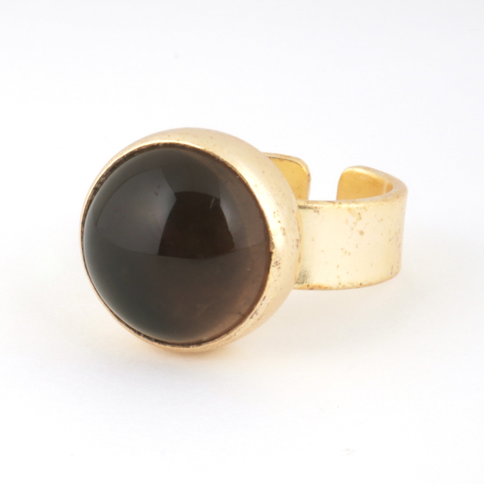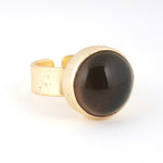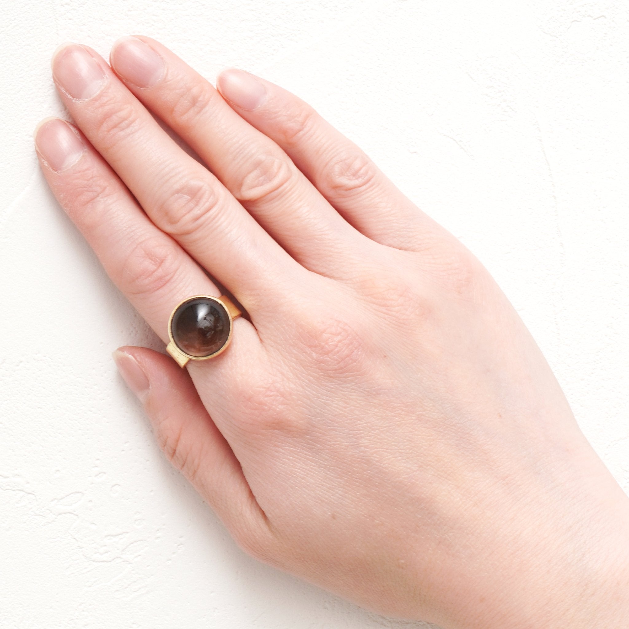 シンプルなフォルムの中に、天然石の個性とゴールドの上品な光沢が際立つデザイン。角度によって異なる表情を見せる天然石の魅力を、ぜひ指先で感じてみて。