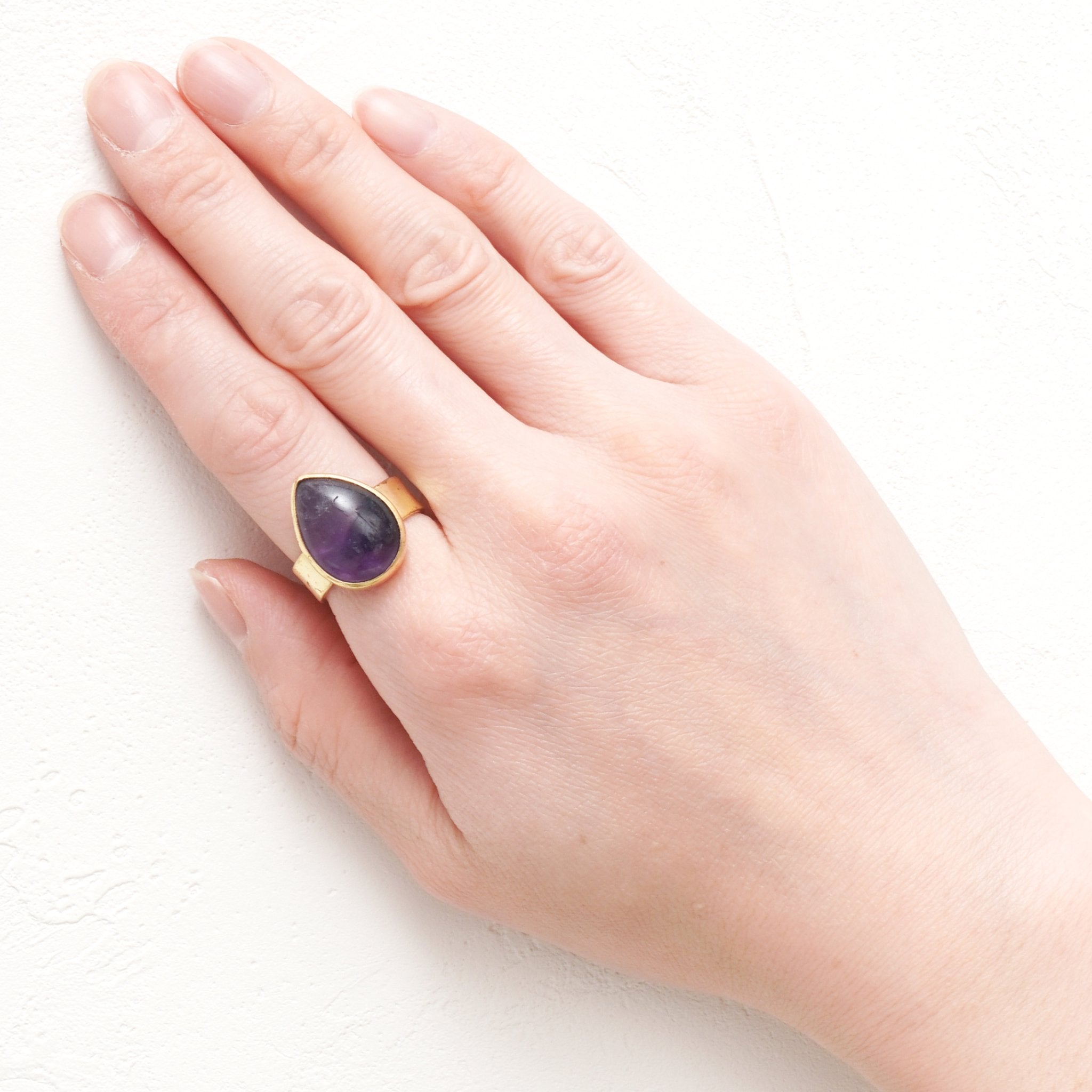すべてのリングは、熟練の職人が一点ずつ丁寧に手作業で仕上げています。選び抜かれた天然石をセットし、ひとつひとつ磨き上げることで、 機械では出せない温もりと、指に馴染む優しい着け心地 が実現。