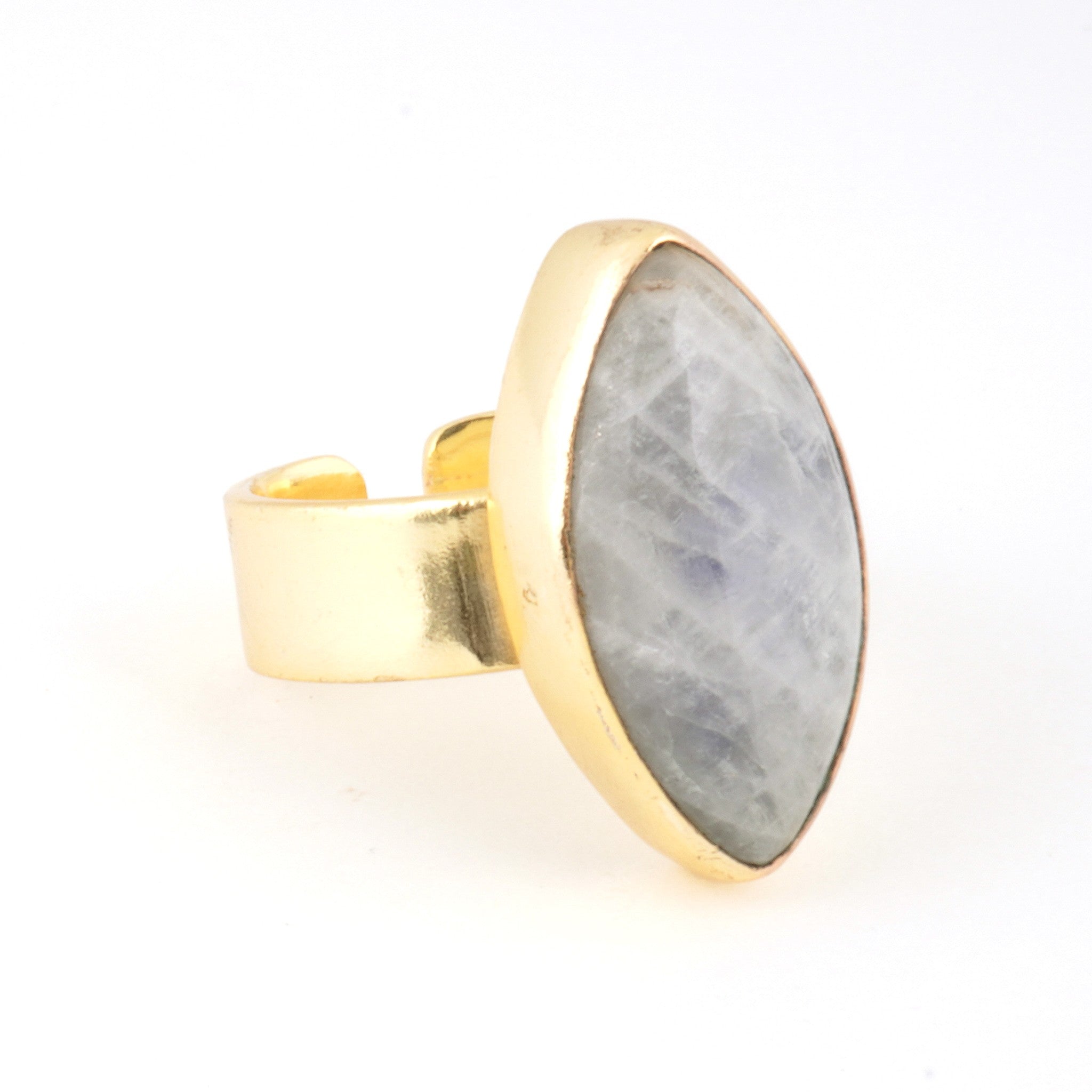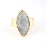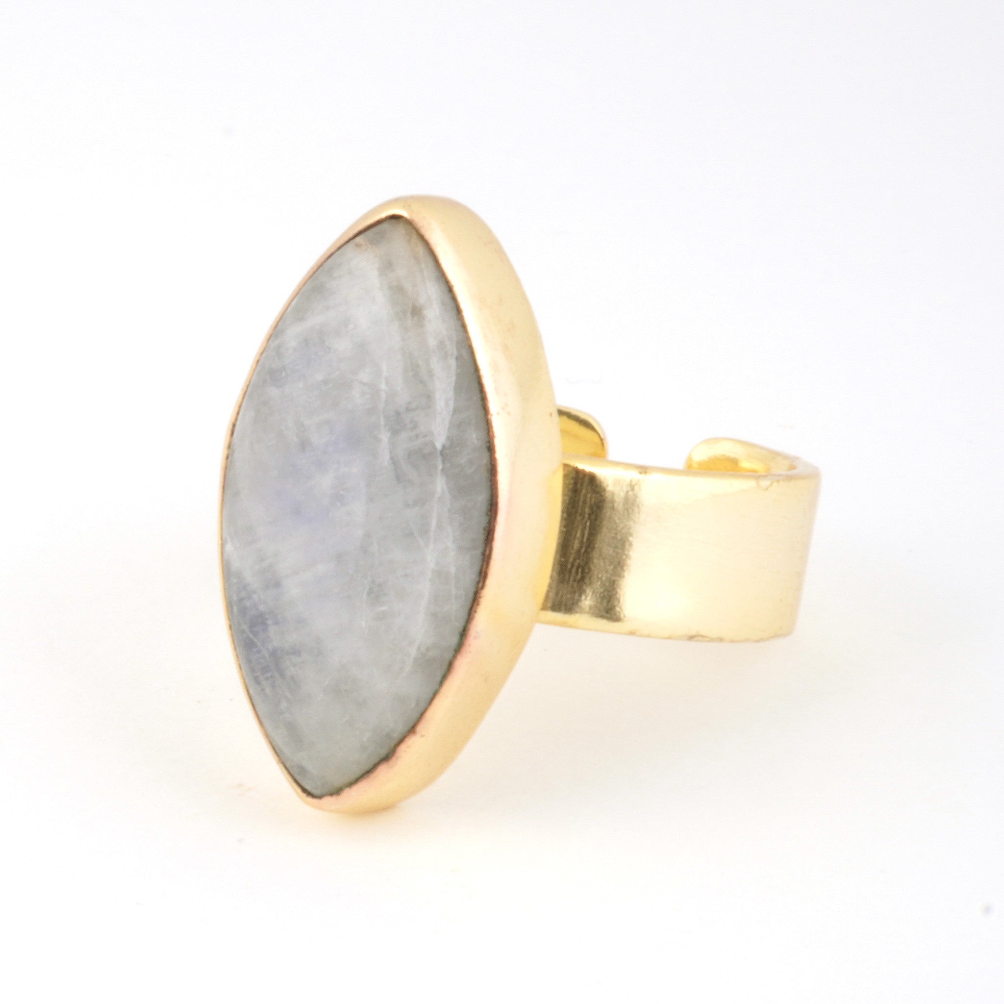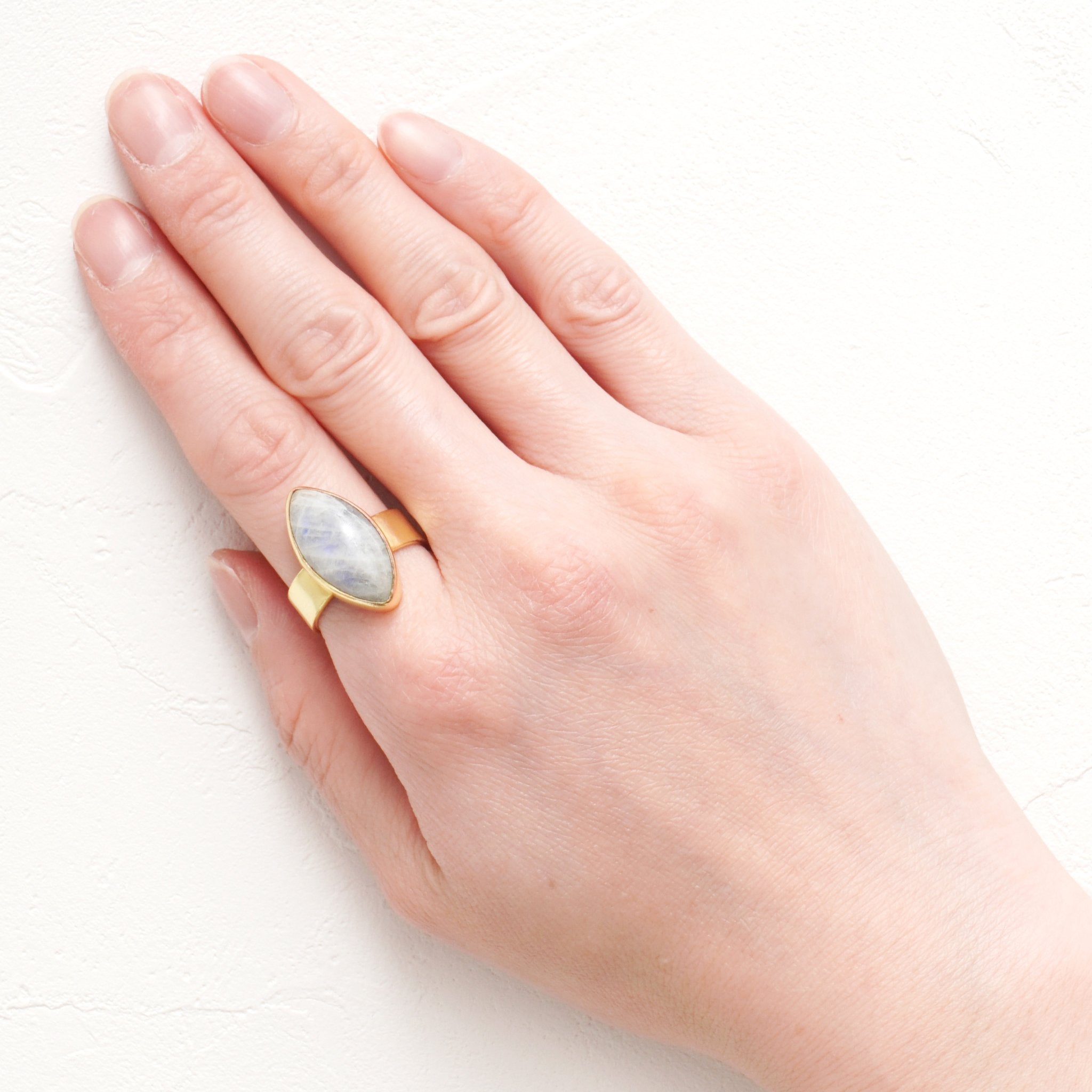 大ぶりの天然石が、まるでアートのように輝くリング。 身に着けるだけで、シンプルなコーデも一気に洗練された印象に。