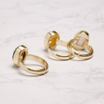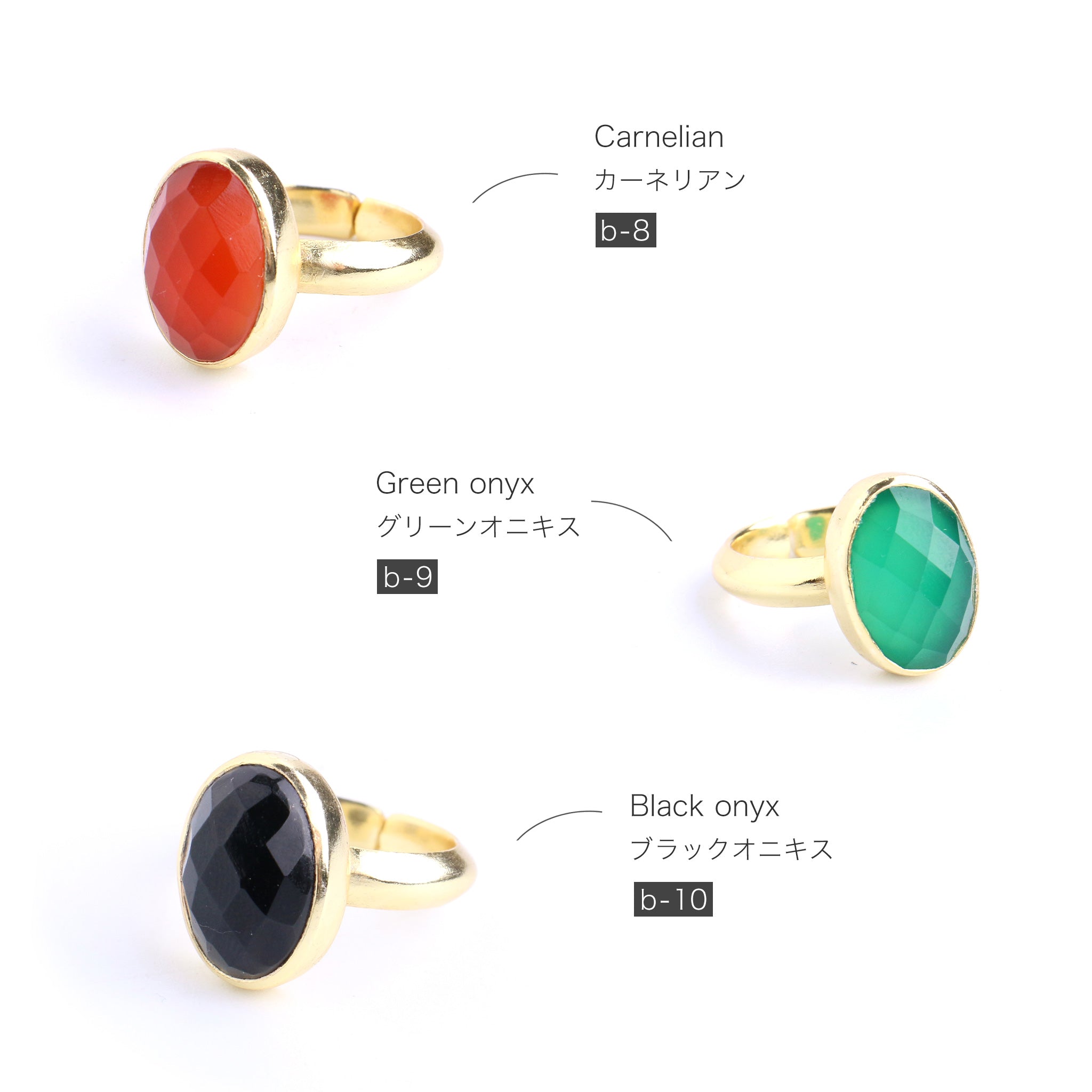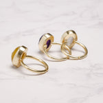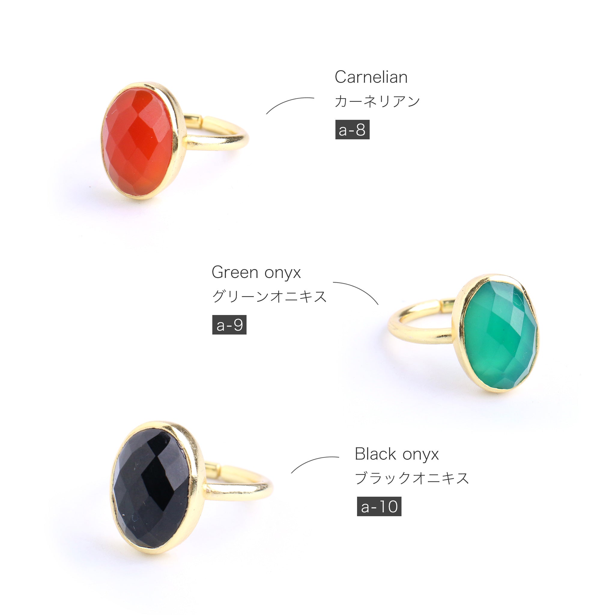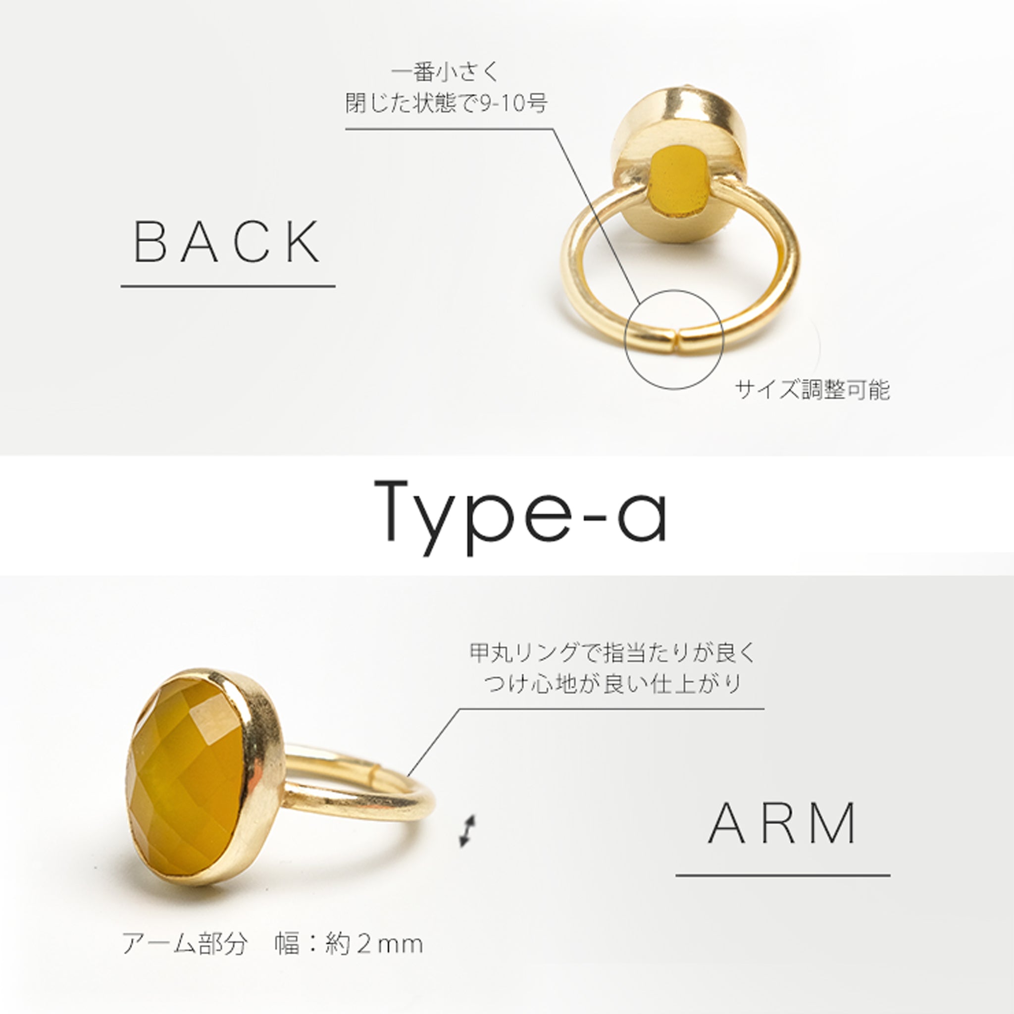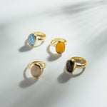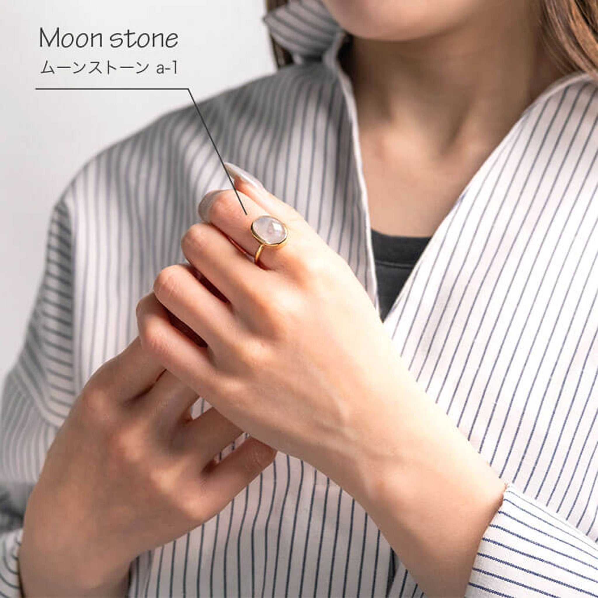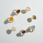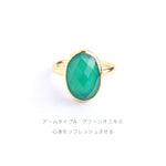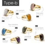 シンプルなフォルムの中に、天然石の個性とゴールドの上品な光沢が際立つデザイン。角度によって異なる表情を見せる天然石の魅力を、ぜひ指先で感じてみて。