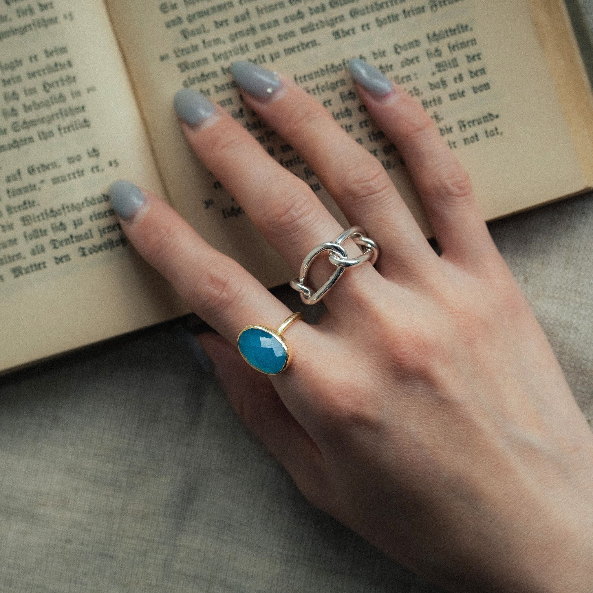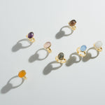 シンプルなフォルムの中に、天然石の個性と輝きが詰まったリング。光を受けるたびに異なる表情を見せるカットが、指先を美しく彩ります。天然石が持つパワーと魅力を、毎日のアクセントに。