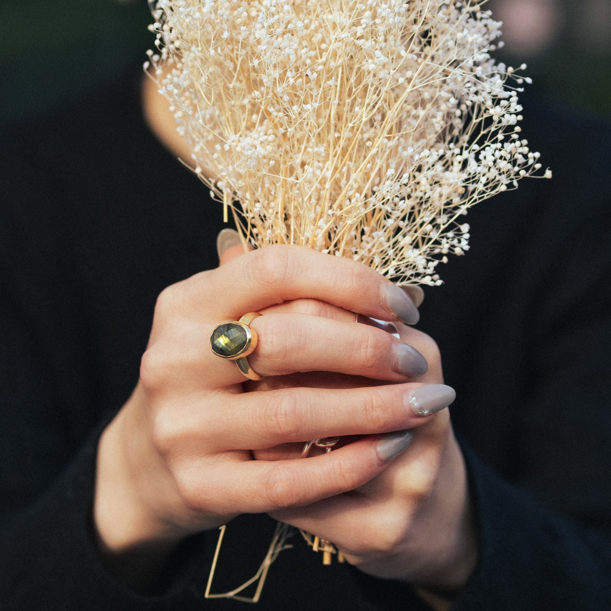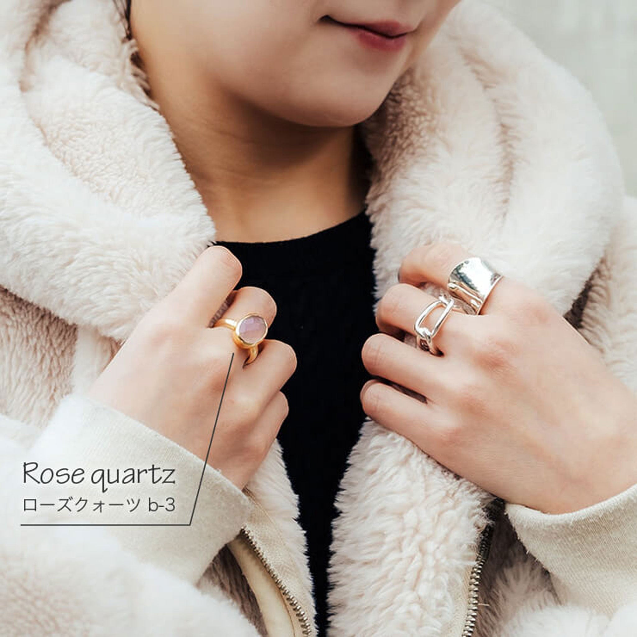 すべてのリングは、熟練の職人が一点ずつ丁寧に手作業で仕上げています。選び抜かれた天然石をセットし、ひとつひとつ磨き上げることで、 機械では出せない温もりと、指に馴染む優しい着け心地 が実現。