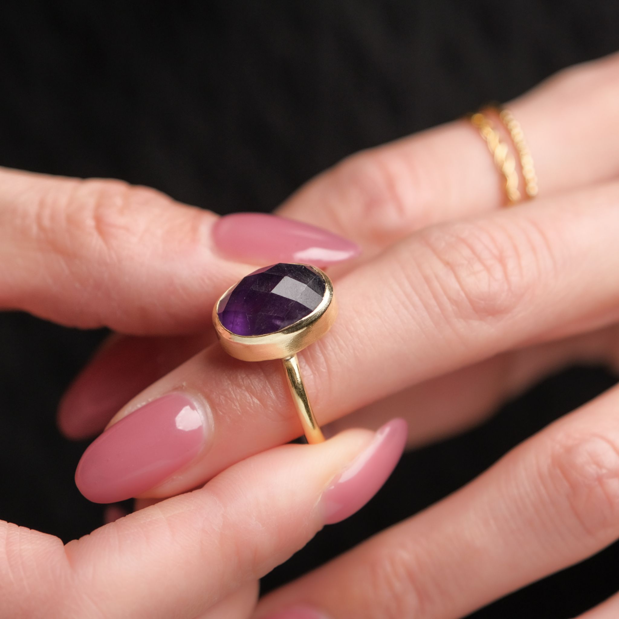 すべてのリングは、熟練の職人が一点ずつ丁寧に手作業で仕上げています。選び抜かれた天然石をセットし、ひとつひとつ磨き上げることで、 機械では出せない温もりと、指に馴染む優しい着け心地 が実現。