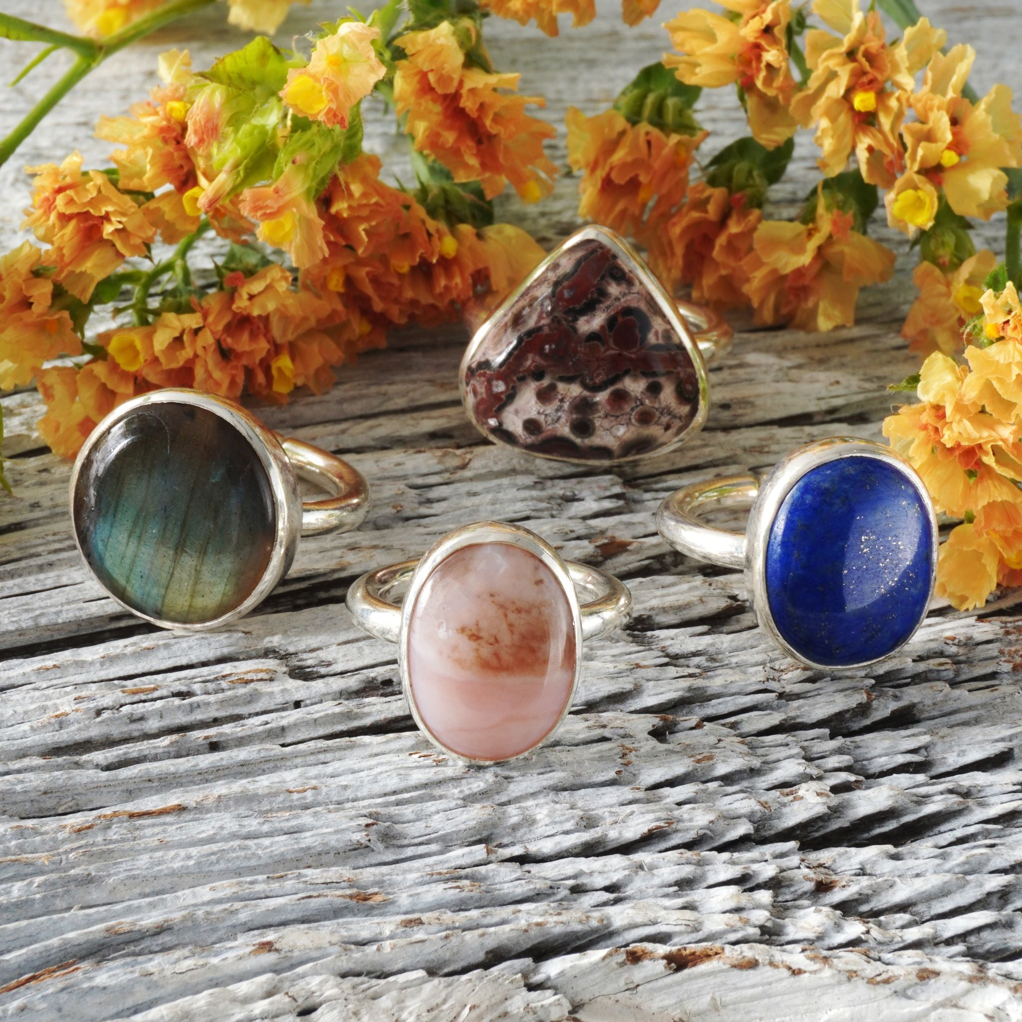 インド・ジャイプールで厳選された良質の天然石。お気に入りの石を末永くご愛用頂けるようにリングアームはシルバー925を採用し、また自分サイズにアレンジ自由なフリーサイズリングを採用。天然石の形に合わせて、インドの職人が1つ1つ丁寧に作り上げています。全て1点物、色も形も違う、あなただけのオンリーワンジュエリーです。