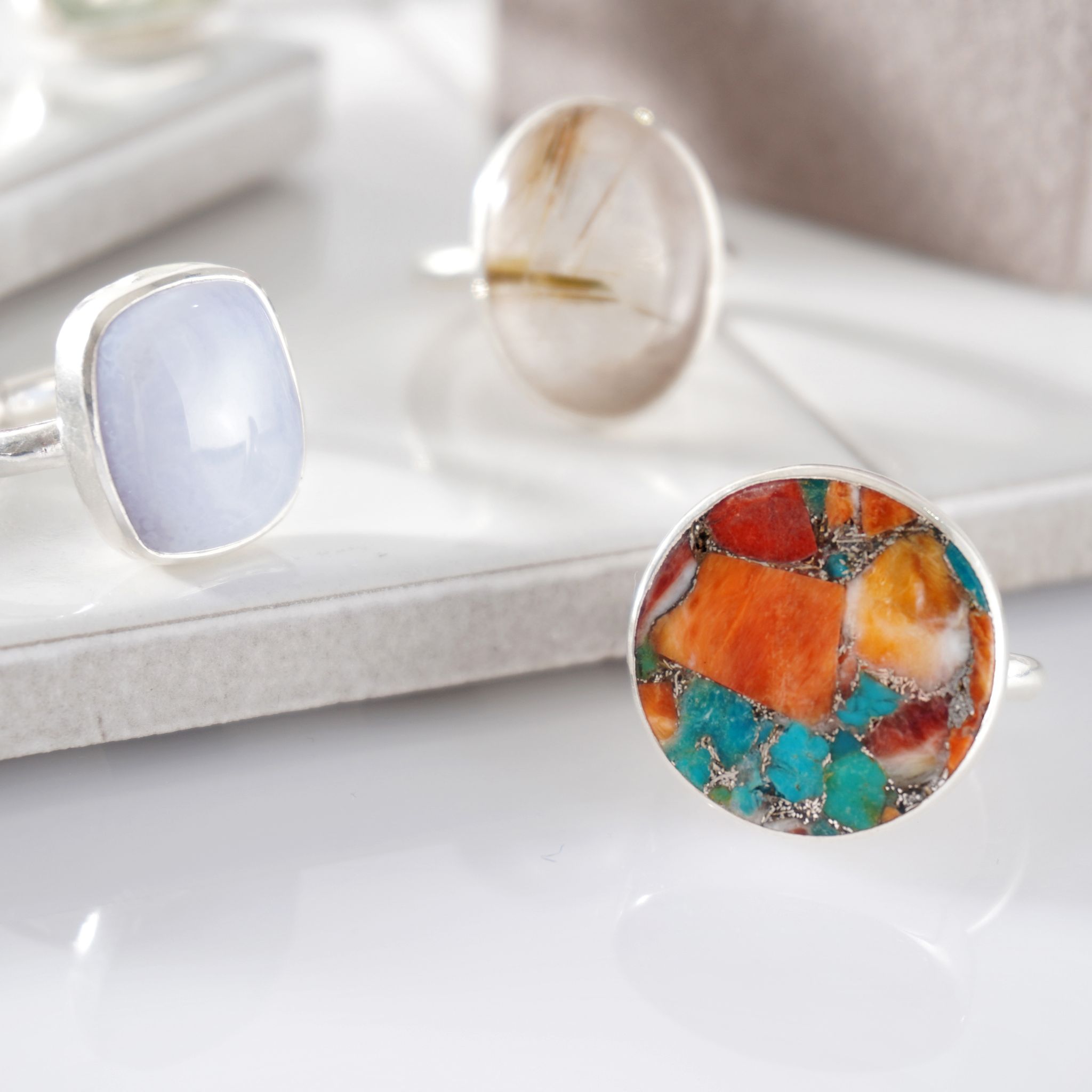 インド・ジャイプールで厳選された良質の天然石。お気に入りの石を末永くご愛用頂けるようにリングアームはシルバー925を採用し、また自分サイズにアレンジ自由なフリーサイズリングを採用。天然石の形に合わせて、インドの職人が1つ1つ丁寧に作り上げています。全て1点物、色も形も違う、あなただけのオンリーワンジュエリーです。