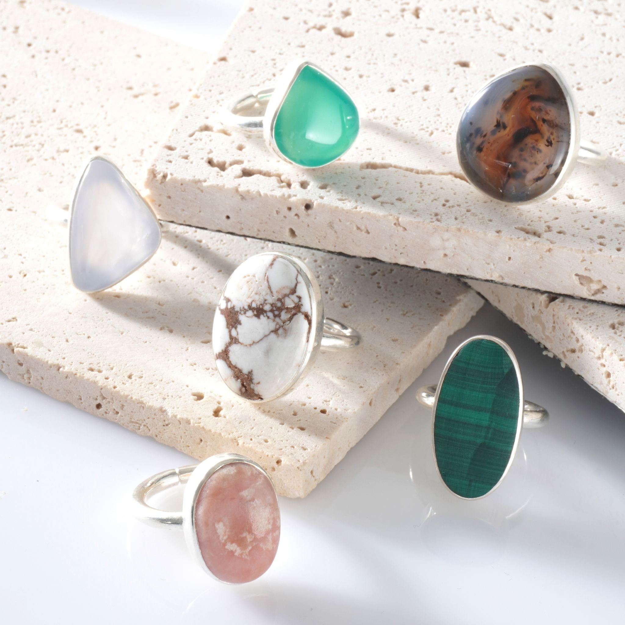 インド・ジャイプールで厳選された良質の天然石。お気に入りの石を末永くご愛用頂けるようにリングアームはシルバー925を採用し、また自分サイズにアレンジ自由なフリーサイズリングを採用。天然石の形に合わせて、インドの職人が1つ1つ丁寧に作り上げています。全て1点物、色も形も違う、あなただけのオンリーワンジュエリーです。