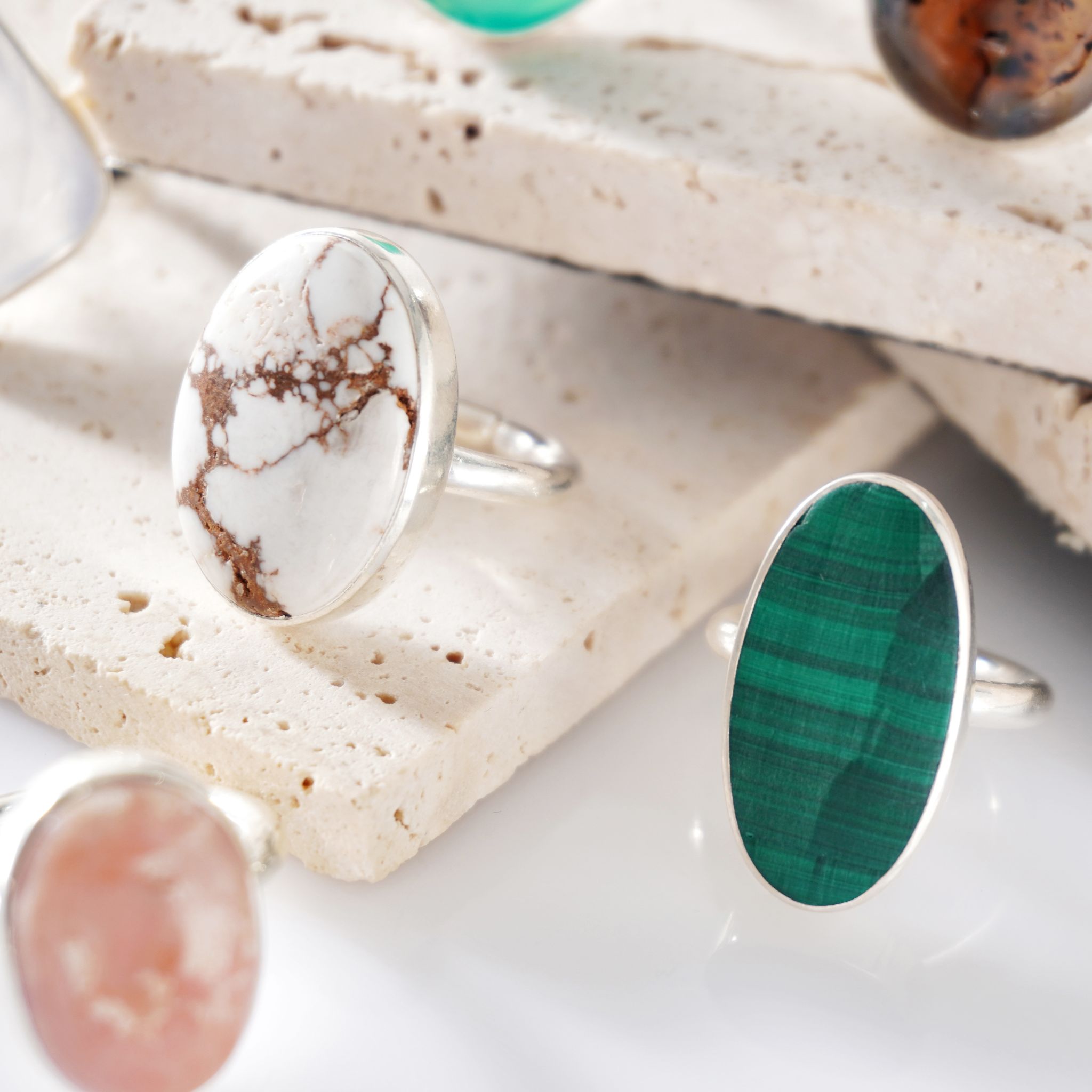 すべてのリングは、インド・ジャイプールの熟練の職人が一点ずつ丁寧に手作業で仕上げています。選び抜かれた天然石をセットし、ひとつひとつ磨き上げることで、 機械では出せない温もりと、指に馴染む優しい着け心地 が実現。