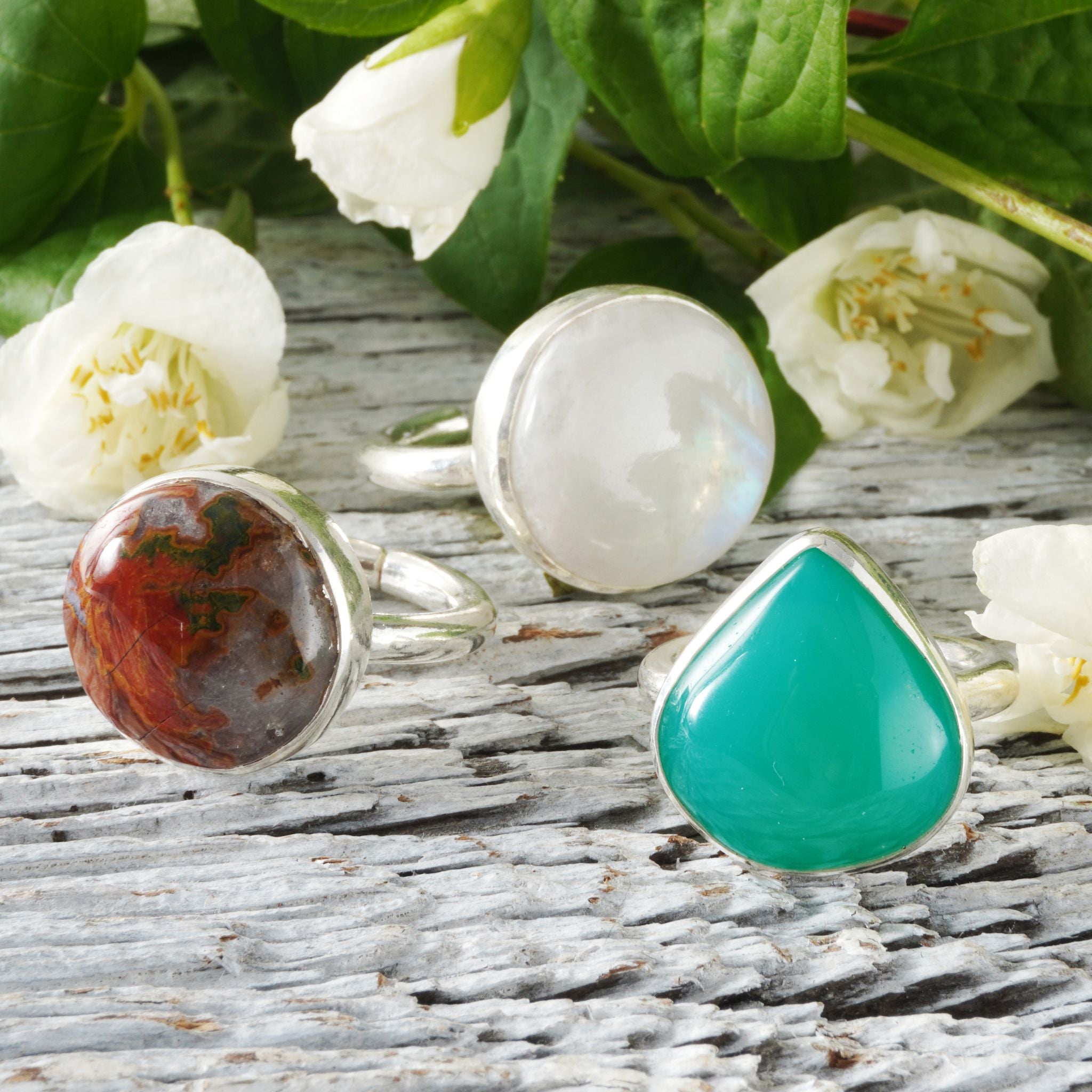 インド・ジャイプールで厳選された良質の天然石。お気に入りの石を末永くご愛用頂けるようにリングアームはシルバー925を採用し、また自分サイズにアレンジ自由なフリーサイズリングを採用。天然石の形に合わせて、インドの職人が1つ1つ丁寧に作り上げています。全て1点物、色も形も違う、あなただけのオンリーワンジュエリーです。