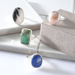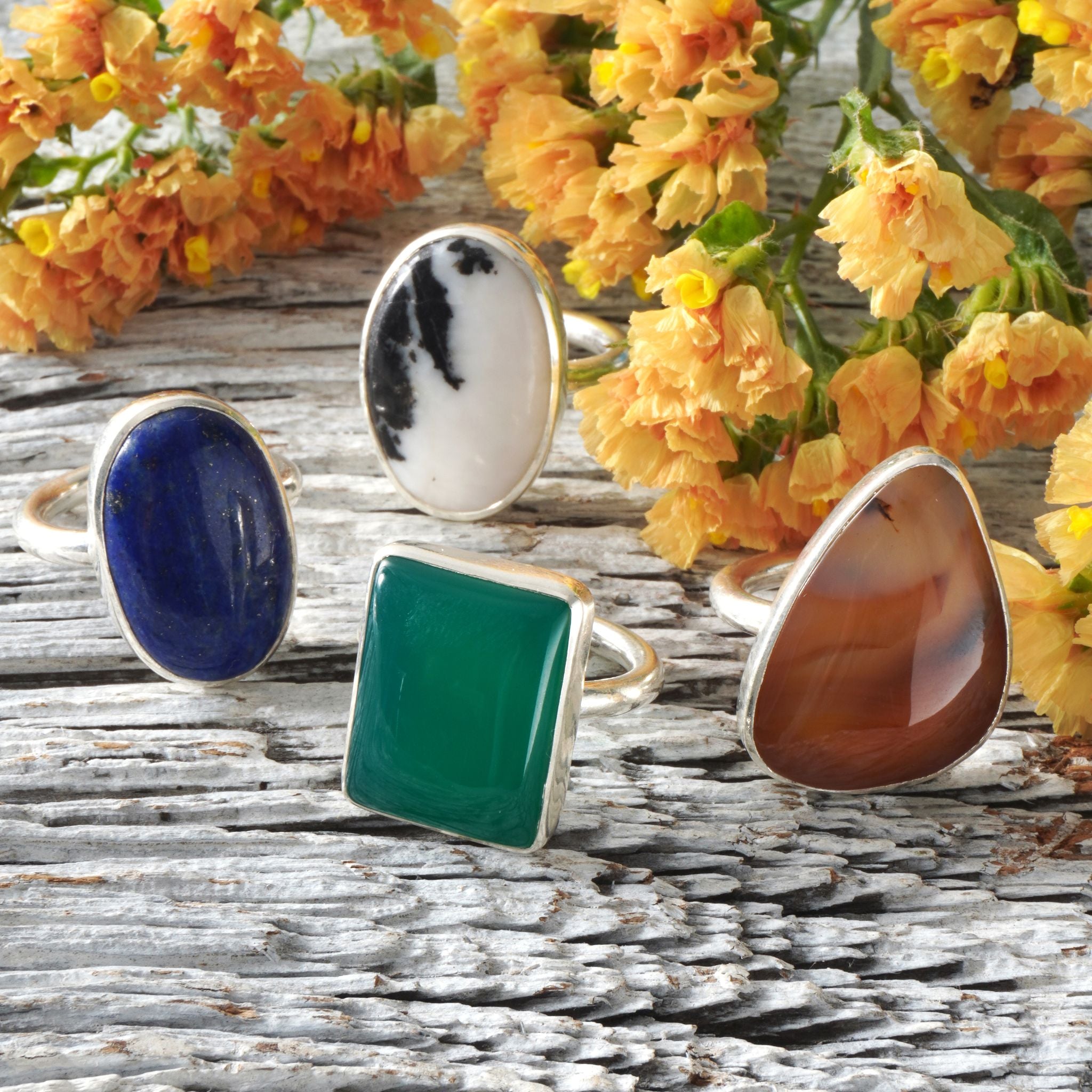 インド・ジャイプールで厳選された良質の天然石。お気に入りの石を末永くご愛用頂けるようにリングアームはシルバー925を採用し、また自分サイズにアレンジ自由なフリーサイズリングを採用。天然石の形に合わせて、インドの職人が1つ1つ丁寧に作り上げています。全て1点物、色も形も違う、あなただけのオンリーワンジュエリーです。