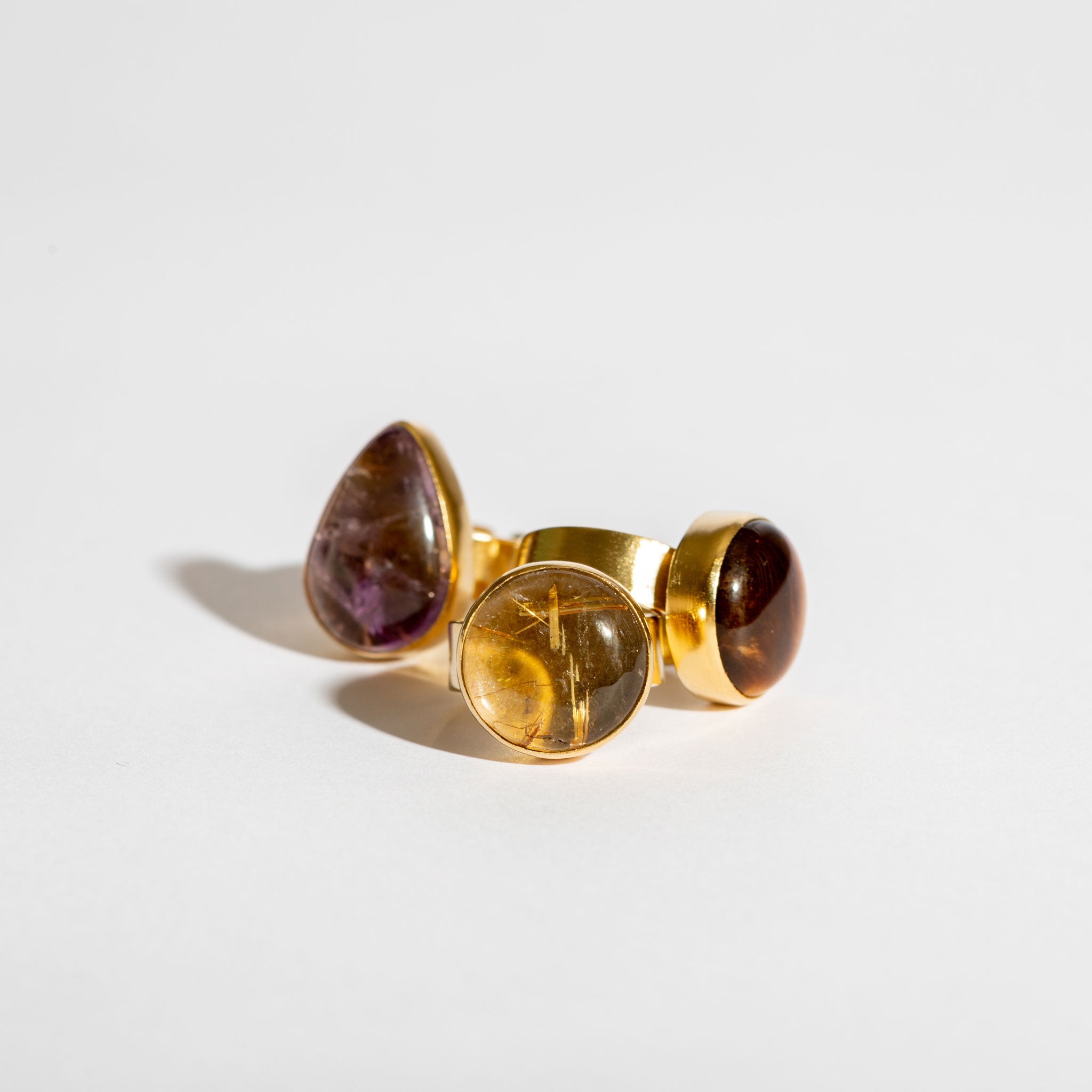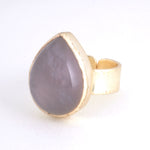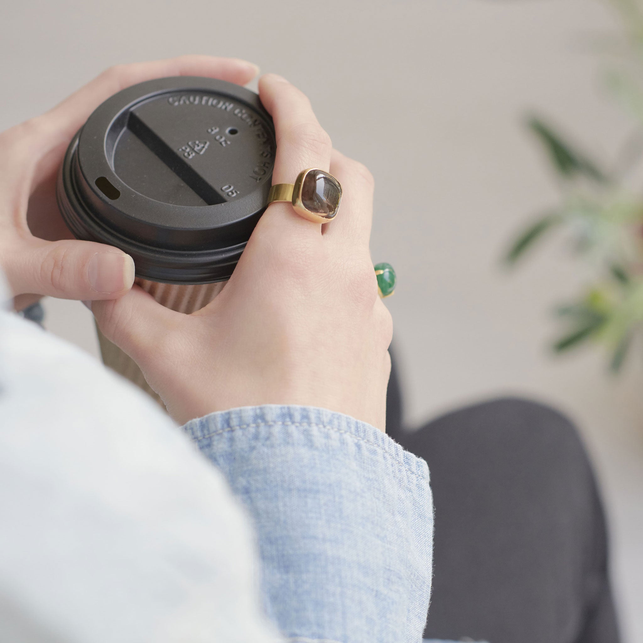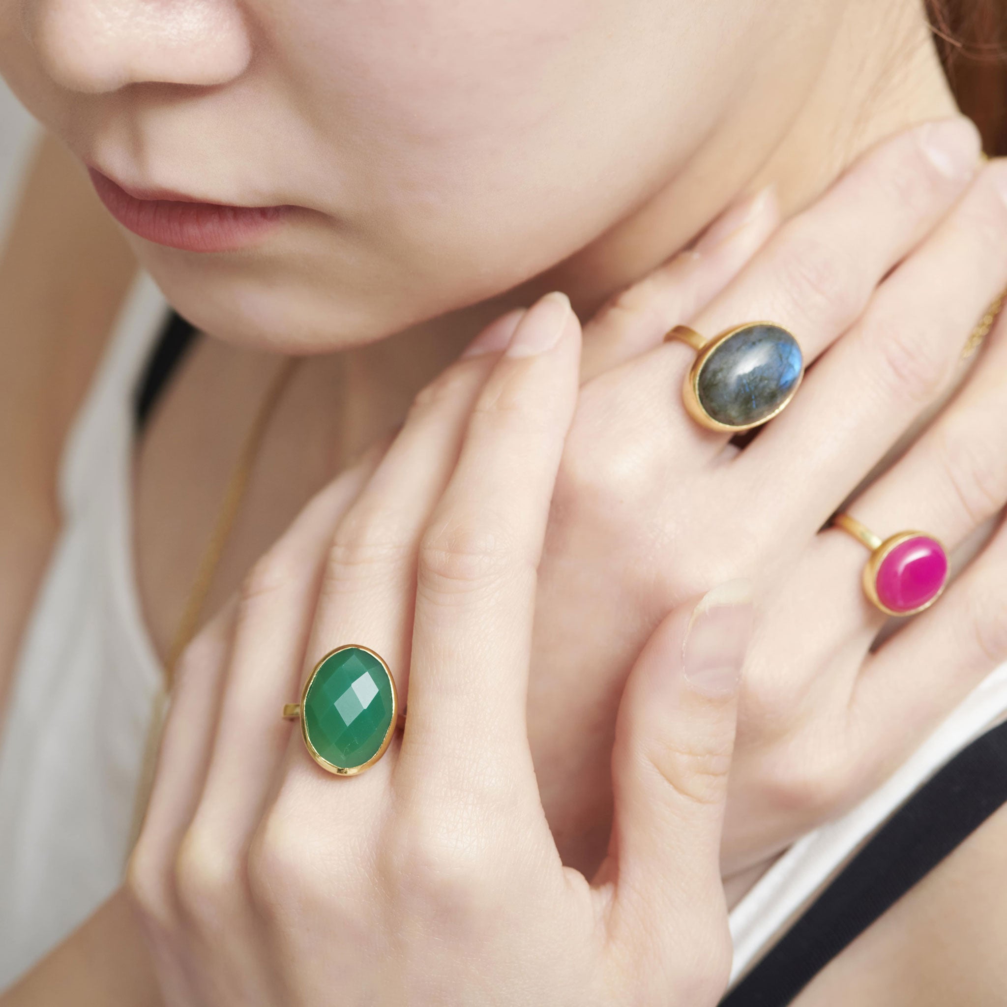多面カット入りの天然石が、まるでアートのように輝くリング。 身に着けるだけで、シンプルなコーデも一気に洗練された印象に。