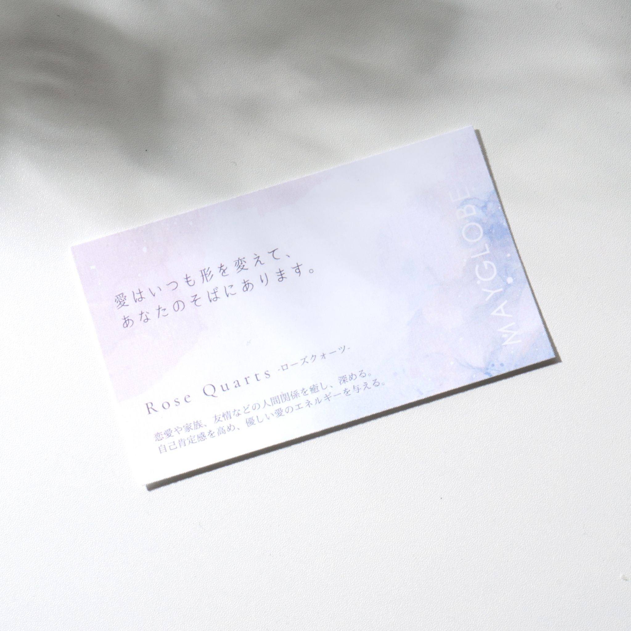 ひとつひとつ異なる表情を持つ天然石と、その石にちなんだメッセージカードをセットにしました。ガチャポン感覚でお楽しみいただける方にお届けいたします。石を選ばれたい方はRaanii ラーニーからお選びください。