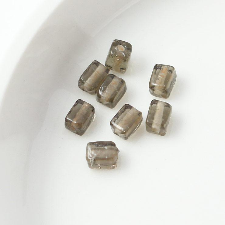 ガラスビーズ キューブ型 3.5×4mm ダークオリーブ×ブラウンラメ 8個入(1セット)