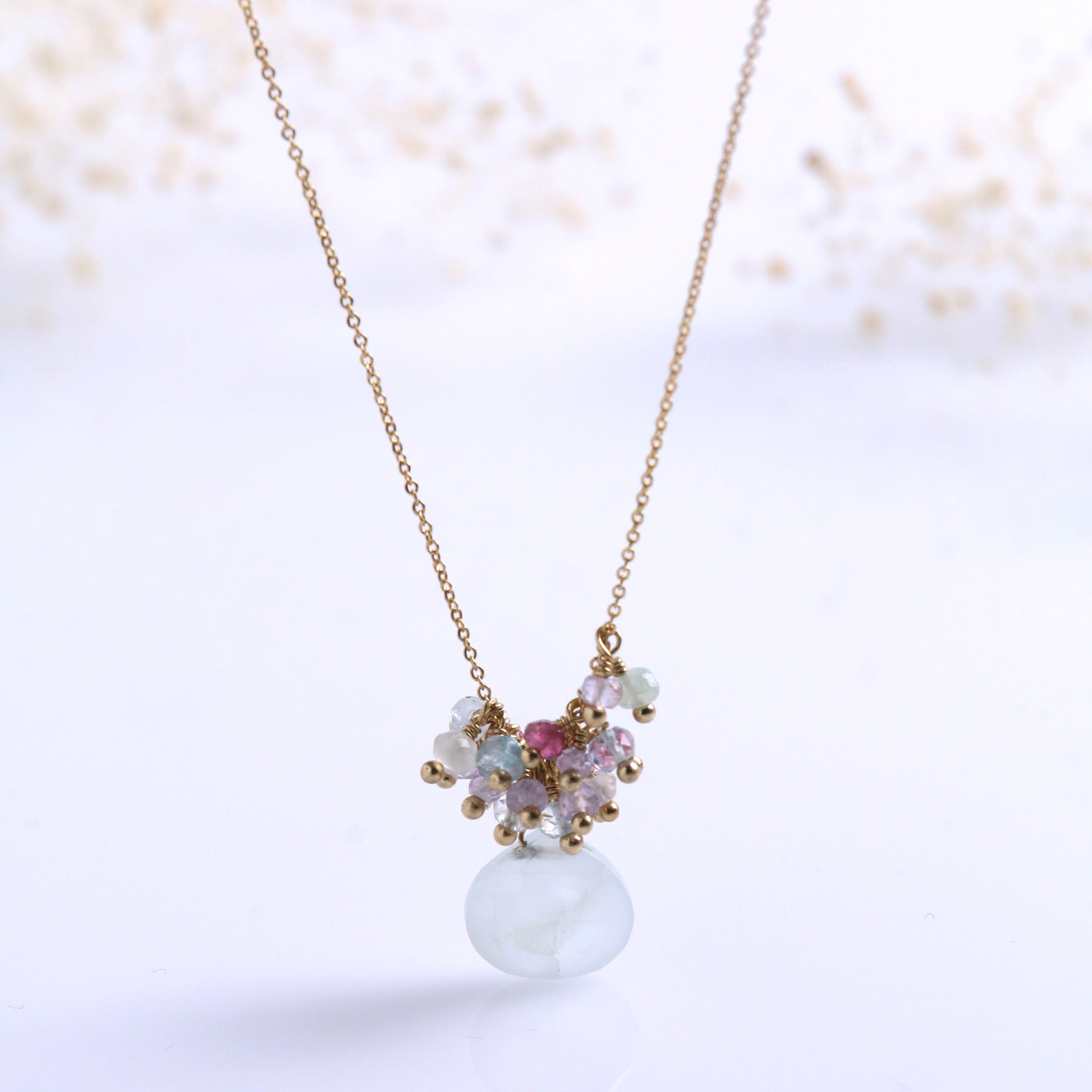 アクアマリン、トルマリンなどを使ったショートネックレス