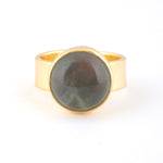シンプルなフォルムの中に、天然石の個性とゴールドの上品な光沢が際立つデザイン。角度によって異なる表情を見せる天然石の魅力を、ぜひ指先で感じてみて。
