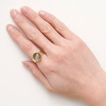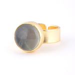大ぶりの天然石が、まるでアートのように輝くリング。 身に着けるだけで、シンプルなコーデも一気に洗練された印象に。