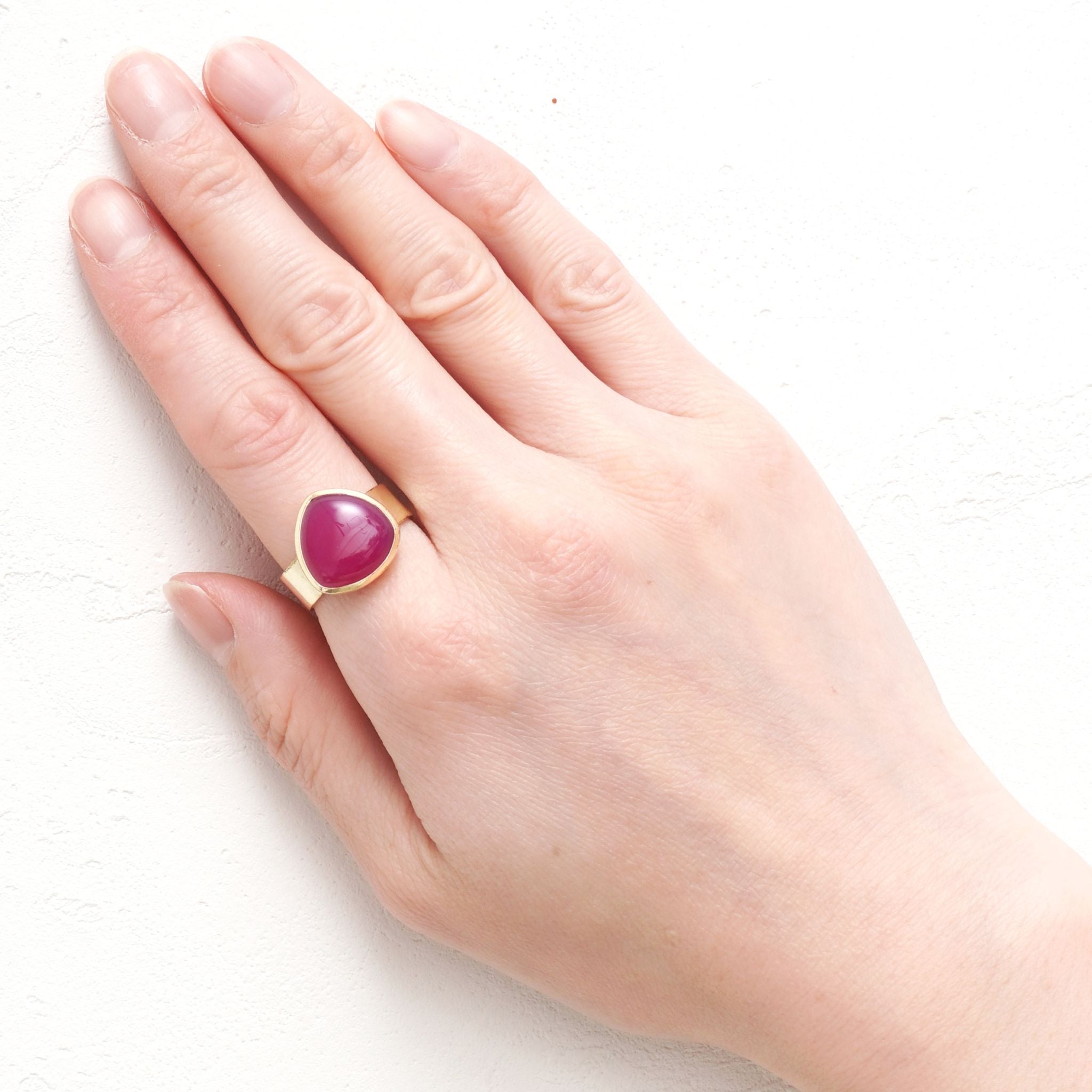 すべてのリングは、熟練の職人が一点ずつ丁寧に手作業で仕上げています。選び抜かれた天然石をセットし、ひとつひとつ磨き上げることで、 機械では出せない温もりと、指に馴染む優しい着け心地 が実現。