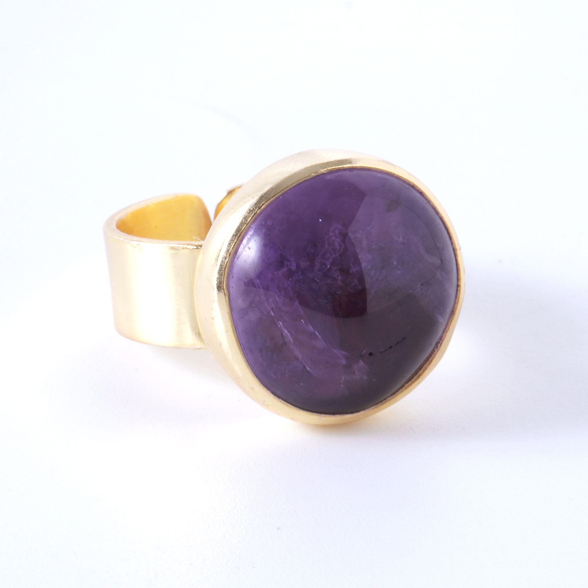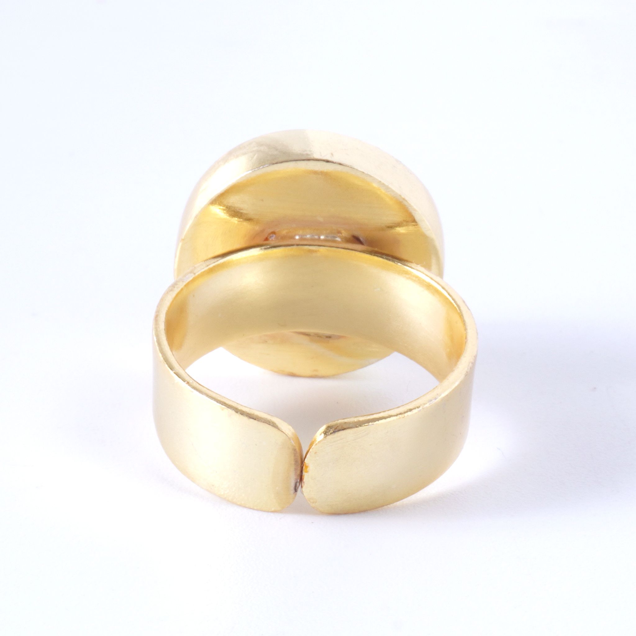 シンプルなフォルムの中に、天然石の個性とゴールドの上品な光沢が際立つデザイン。角度によって異なる表情を見せる天然石の魅力を、ぜひ指先で感じてみて。