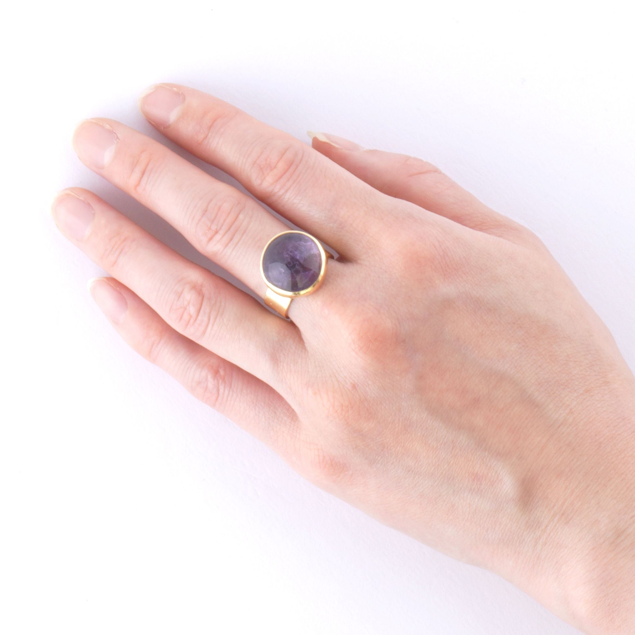 大ぶりの天然石が、まるでアートのように輝くリング。 身に着けるだけで、シンプルなコーデも一気に洗練された印象に。