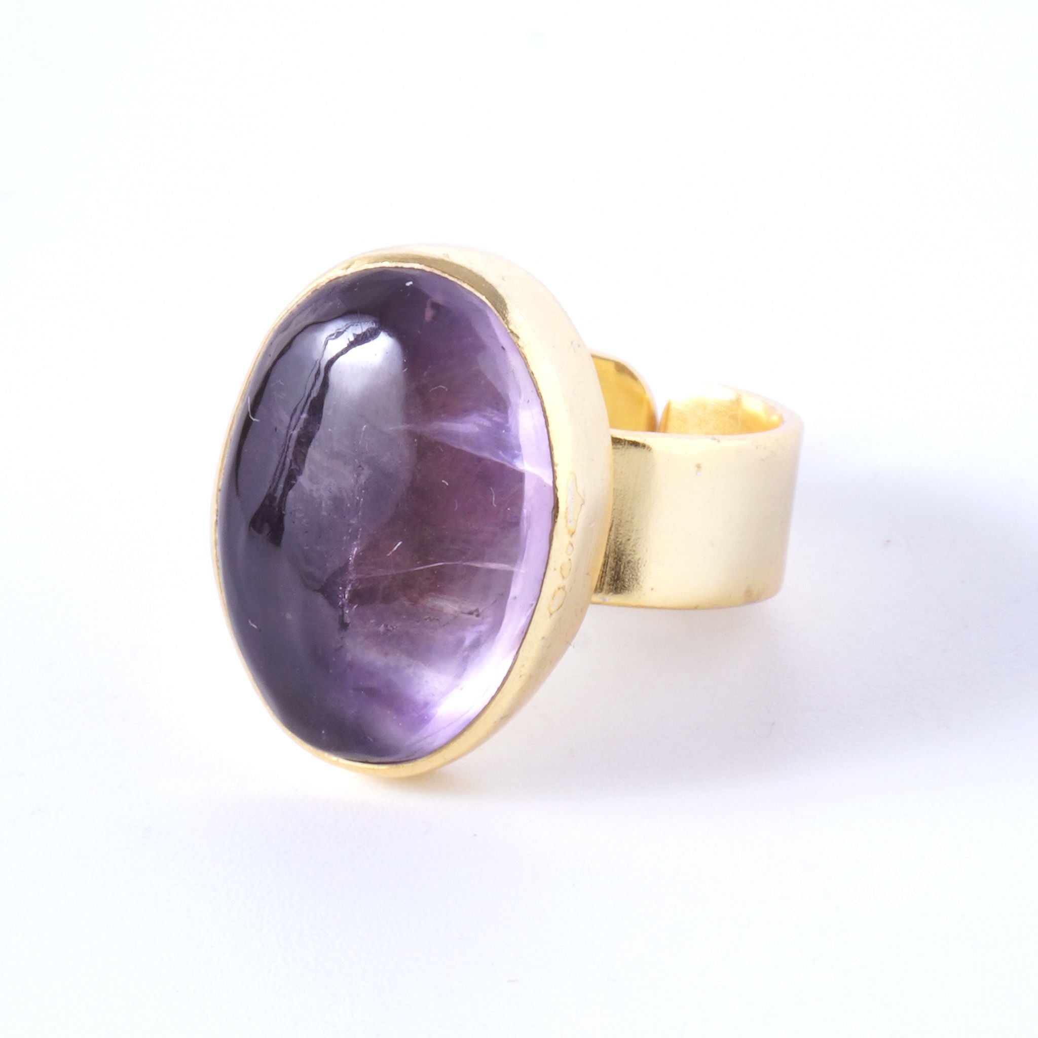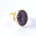 インド・ジャイプールで厳選された良質の天然石。確かな品質をお手頃価格で提供したいという思いから、リングパーツは真鍮を、また自分サイズにアレンジ自由なフリーサイズリングを採用。天然石の形に合わせて、インドの職人が1つ1つ丁寧に作り上げています。全て1点物、色も形も違う、あなただけのオンリーワンジュエリーです。