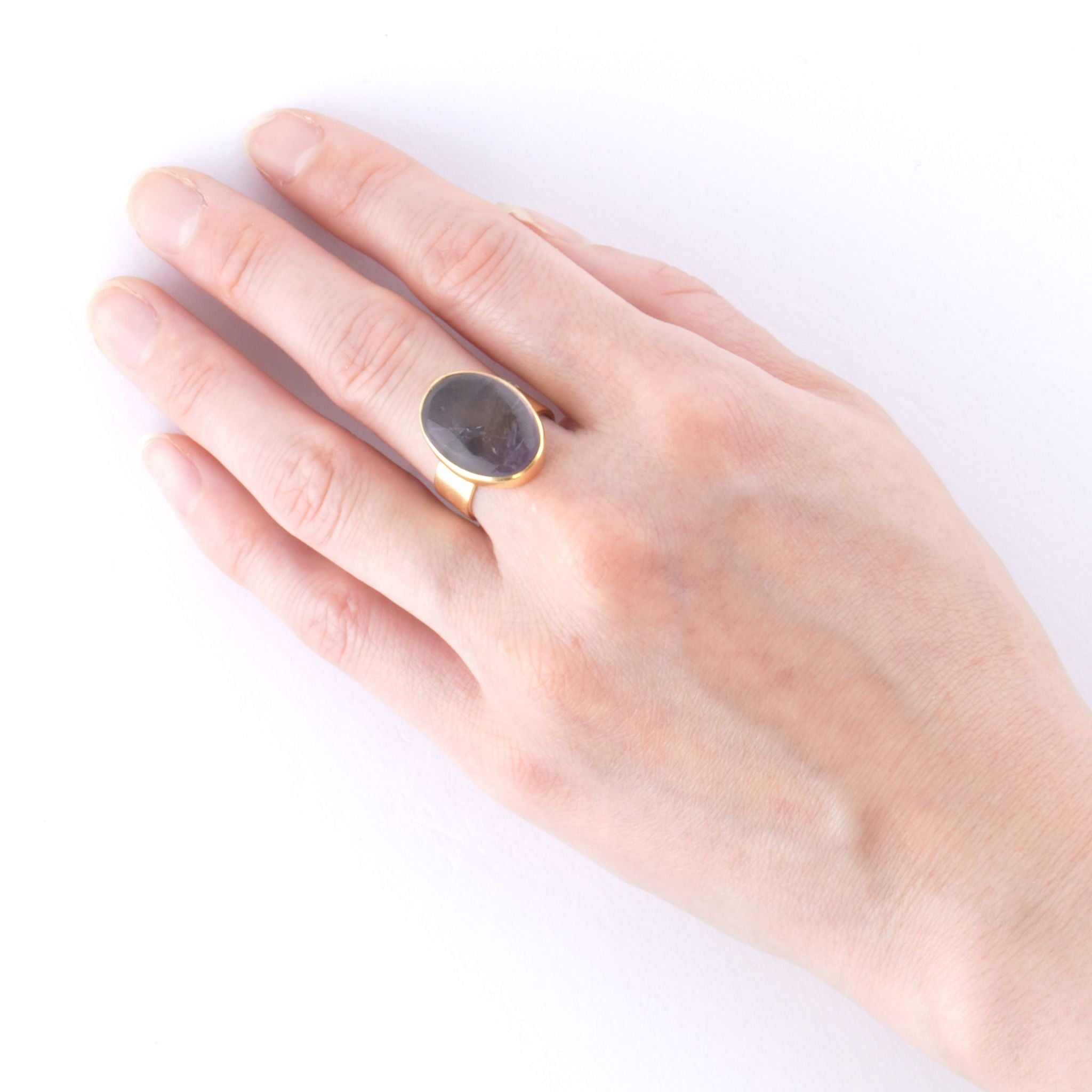 シンプルなフォルムの中に、天然石の個性とゴールドの上品な光沢が際立つデザイン。角度によって異なる表情を見せる天然石の魅力を、ぜひ指先で感じてみて。