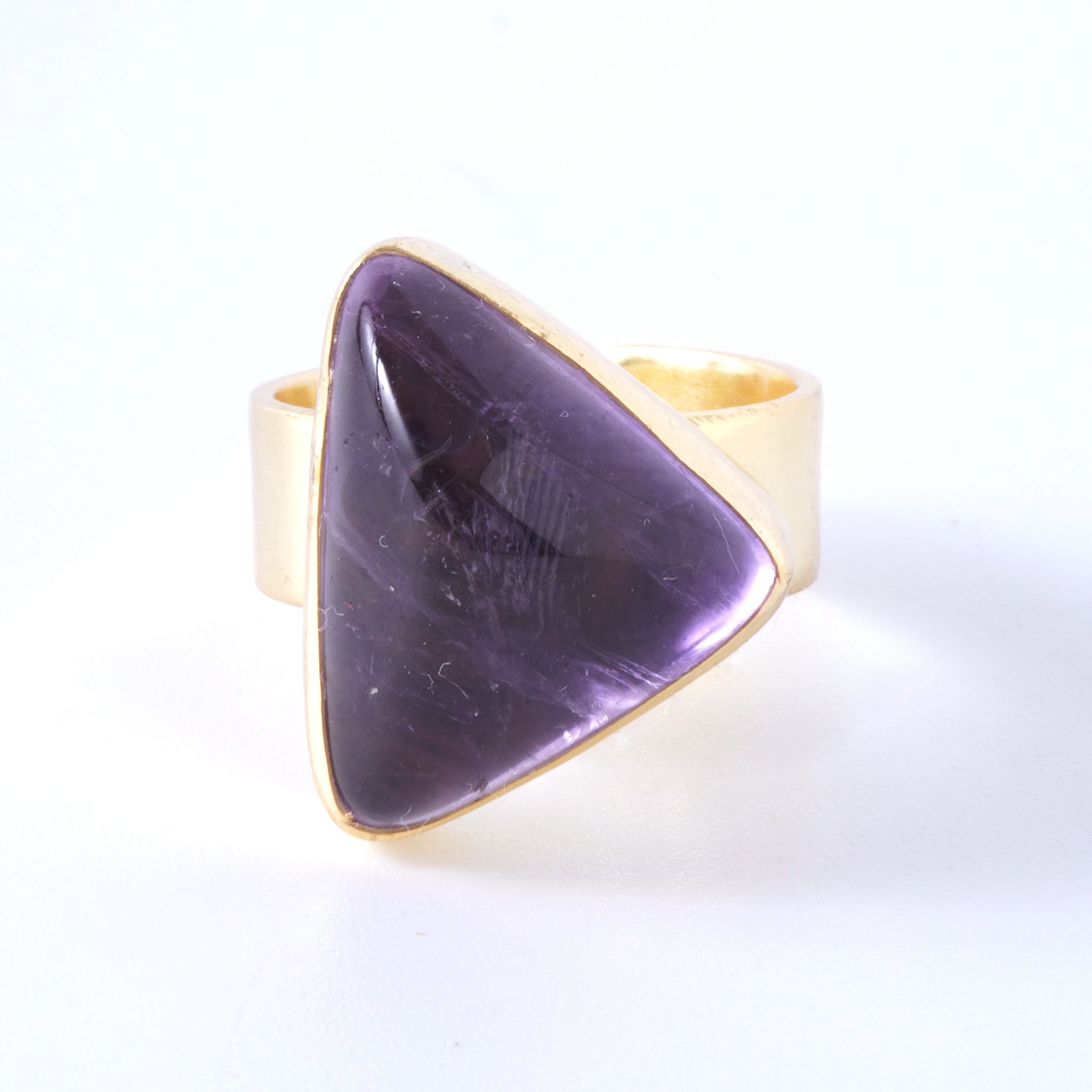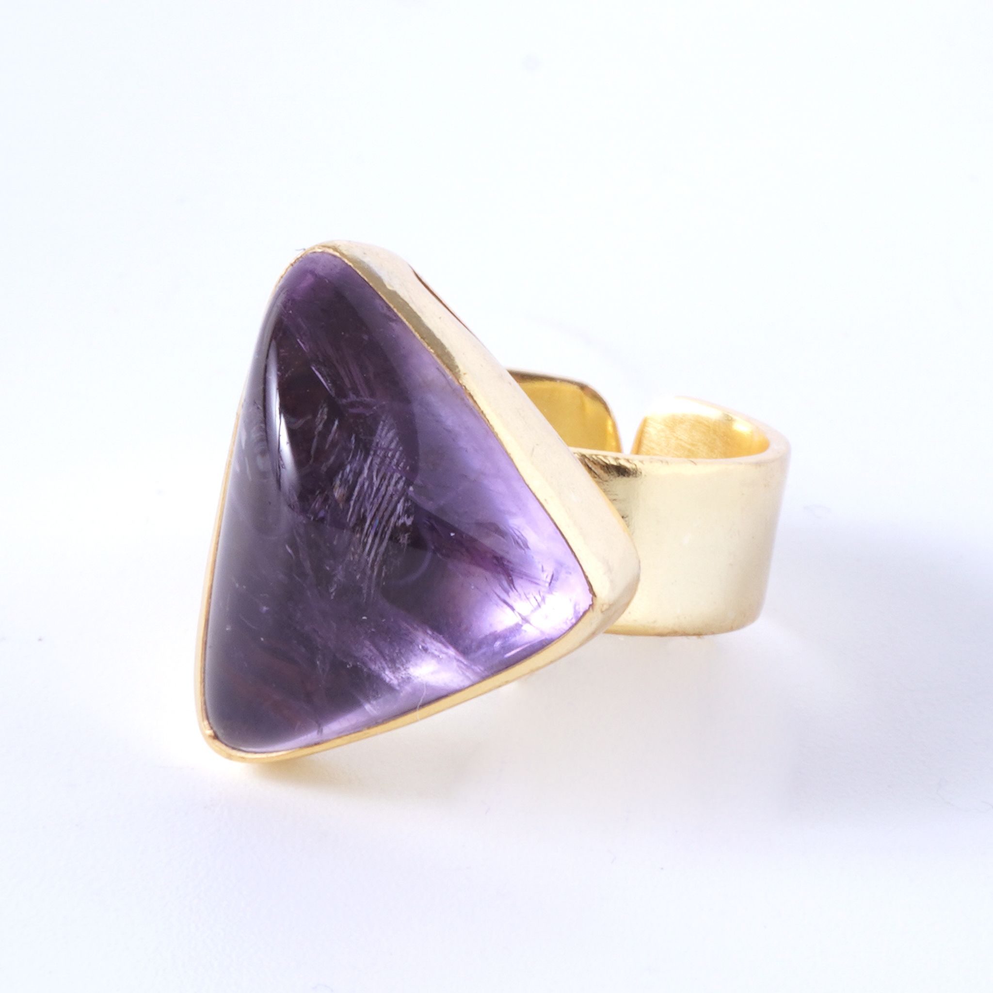 インド・ジャイプールで厳選された良質の天然石。確かな品質をお手頃価格で提供したいという思いから、リングパーツは真鍮を、また自分サイズにアレンジ自由なフリーサイズリングを採用。天然石の形に合わせて、インドの職人が1つ1つ丁寧に作り上げています。全て1点物、色も形も違う、あなただけのオンリーワンジュエリーです。