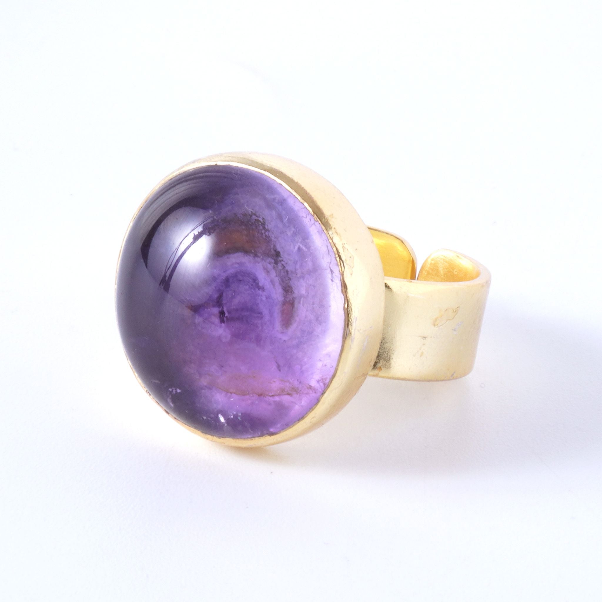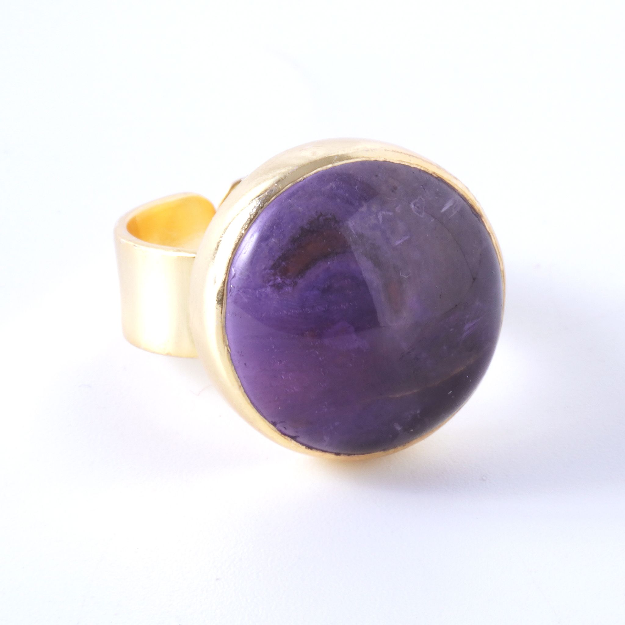 インド・ジャイプールで厳選された良質の天然石。確かな品質をお手頃価格で提供したいという思いから、リングパーツは真鍮を、また自分サイズにアレンジ自由なフリーサイズリングを採用。天然石の形に合わせて、インドの職人が1つ1つ丁寧に作り上げています。全て1点物、色も形も違う、あなただけのオンリーワンジュエリーです。