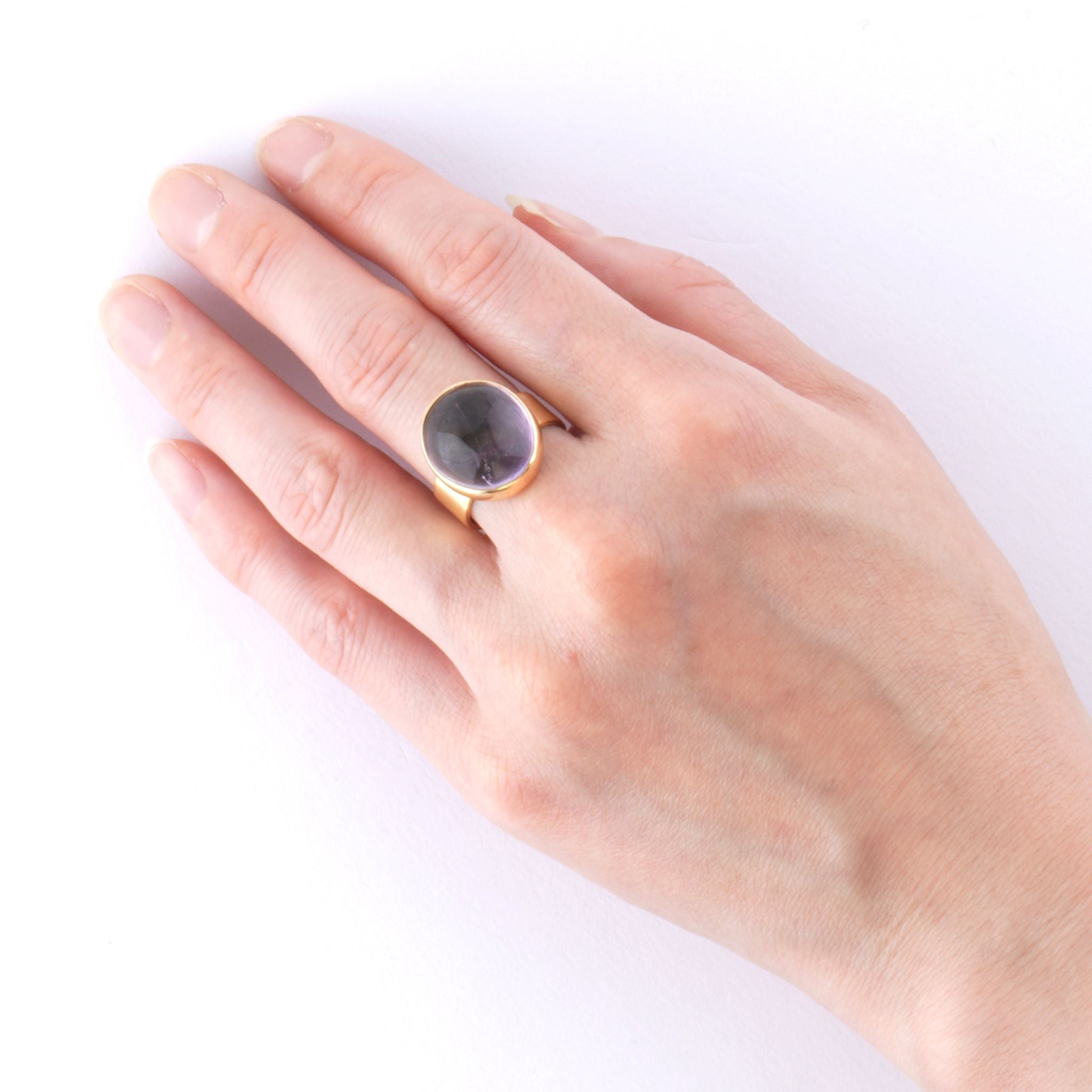 大ぶりの天然石が、まるでアートのように輝くリング。 身に着けるだけで、シンプルなコーデも一気に洗練された印象に。