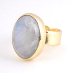 大ぶりの天然石が、まるでアートのように輝くリング。 身に着けるだけで、シンプルなコーデも一気に洗練された印象に。