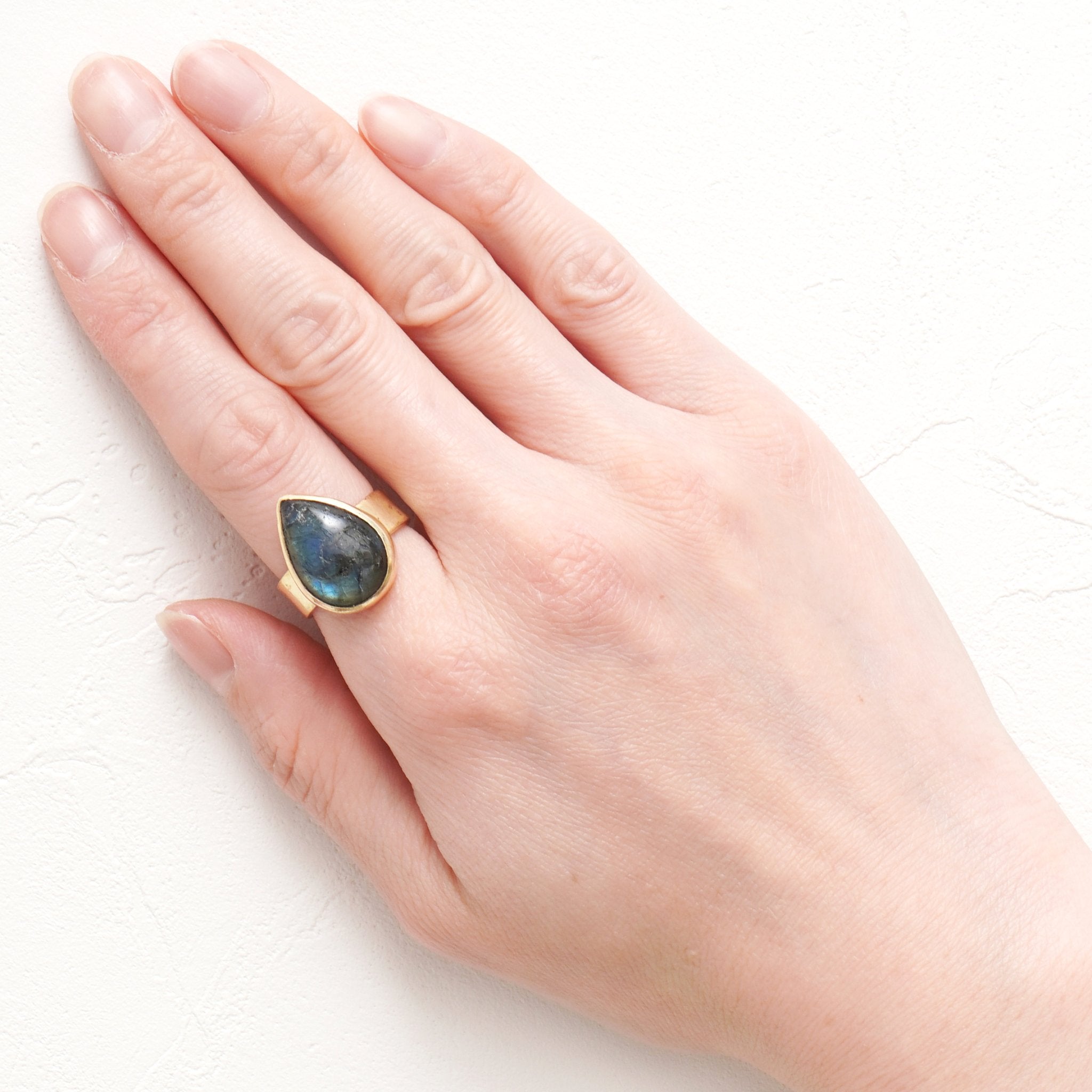 大ぶりの天然石が、まるでアートのように輝くリング。 身に着けるだけで、シンプルなコーデも一気に洗練された印象に。